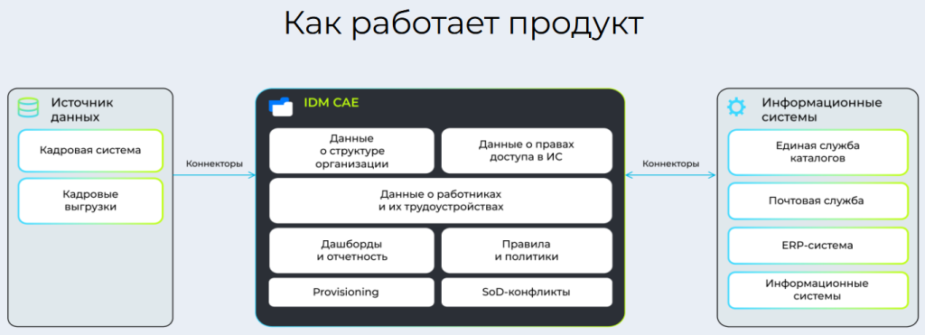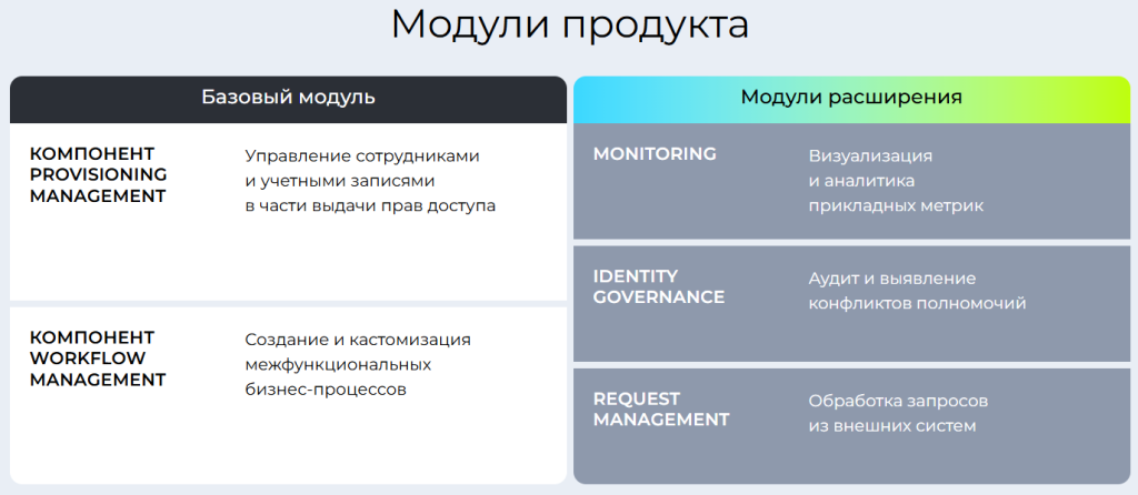 Комплексное решение класса IDM (Identity management), обеспечивающее централизованное управление идентификационными данными и правами доступа в системах, представленных в ИТ-ландшафте компании.