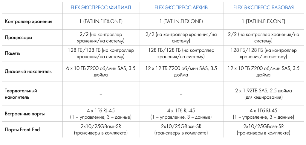 • Контроллер хранения – 1 (TATLIN.FLEX.ONE).